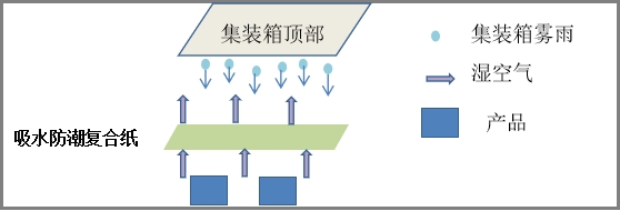 1. 吸(xi)水防潮(chao)(chao)復合紙(zhi)放(fang)置(zhi)在集裝箱內商品頂(ding)部(bu)(bu)及商品底(di)部(bu)(bu),在商品頂(ding)部(bu)(bu)放(fang)置(zhi)防潮(chao)(chao)復合紙(zhi)可有(you)效吸(xi)收集裝箱頂(ding)部(bu)(bu)產生的液態水;在商品底(di)部(bu)(bu)放(fang)置(zhi)防潮(chao)(chao)復合紙(zhi)可吸(xi)收由下向上轉(zhuan)移的濕空氣,減少商品因(yin)浸水和受潮(chao)(chao)而導致的濕損。
