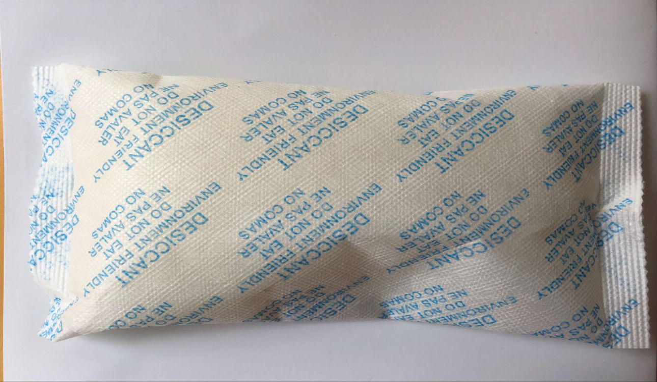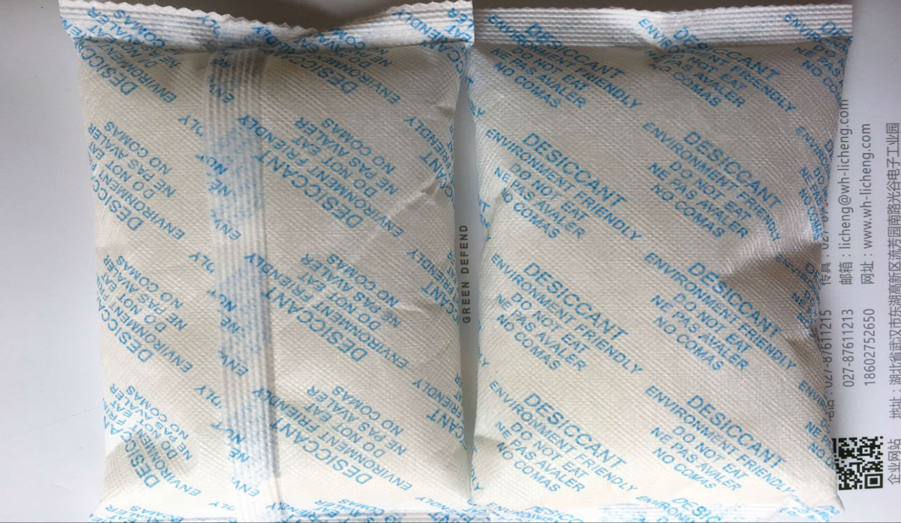 天硅(gui)膠干在(zai)即一般(ban)為珠狀(zhuang)體或球狀(zhuang)體,包裝成不同克重規(gui)格,吸(xi)濕量為自(zi)身的(de)30%。易(yi)于在(zai)各類商(shang)品防潮保護(hu)中使用。